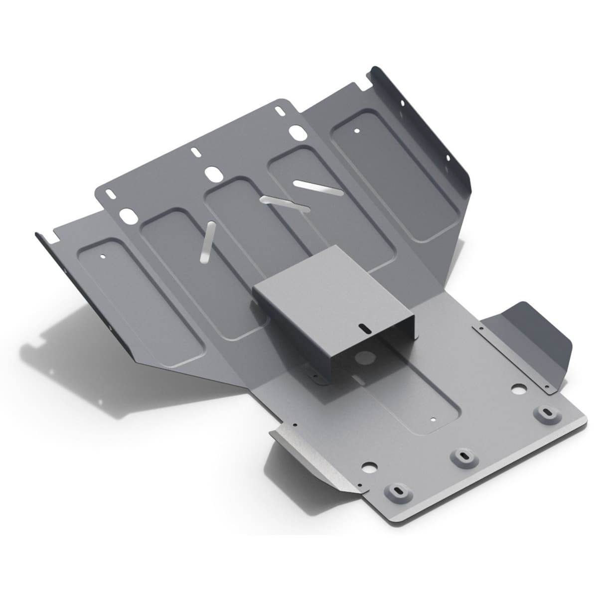Стойкое порошковое окрашивание позволяет сохранить внешний вид, защитит от царапин, предотвратит коррозию. Также имеется утопленный крепеж для предотвращения срывов. Крепеж не образует с алюминием гальваническую пару. Защита спроектирована индивидуально для автомобиля, что позволяет устанавливать ее в штатные места без доработки кузова за 10 мин.