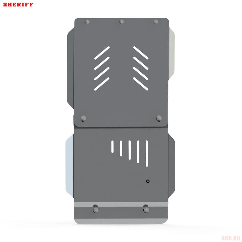Алюминиевая защита кпп, раздаточной коробки с крепежом в комплекте, артикул 24.1312 от российского производителя Шериф. Разработана специально для автомобиля Тойота Ленд Крузер Прадо 90 1996-2002.