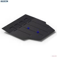 Порошковое окрашивание гарантирует долгий срок службы. А глубокий штамп увеличивает жесткость до 2,5 раз. Также имеется утопленный крепеж для предотвращения срывов. Качественная покраска защиты картера выдерживает 720 часов соляного тумана. Толщина изделия составляет 2-6 мм. Подштамповка в местах крепления предохраняет крепеж от срезания. Деталь спроектирована индивидуально для вашего автомобиля, что позволяет устанавливать ее в штатные места без доработки кузова за 10 мин.