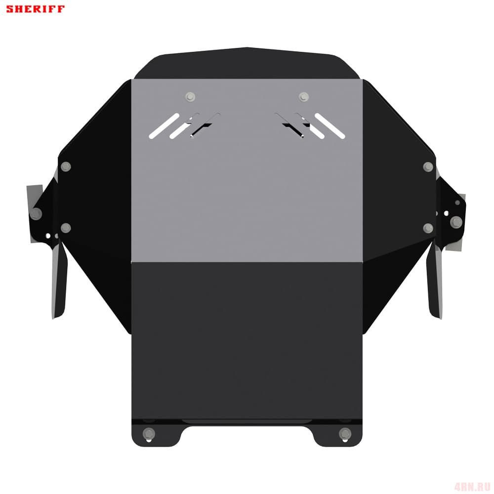 Защита картера Sheriff нужна для сохранности узлов и агрегатов, находящихся на днище авто. Она надежно защитит двигательный отсек вашей машины от повреждений. Также она защищает моторный отсек от влаги, грязи, и предусматривает наличие металлических крыльев, которые выполняют функцию пыльника.
