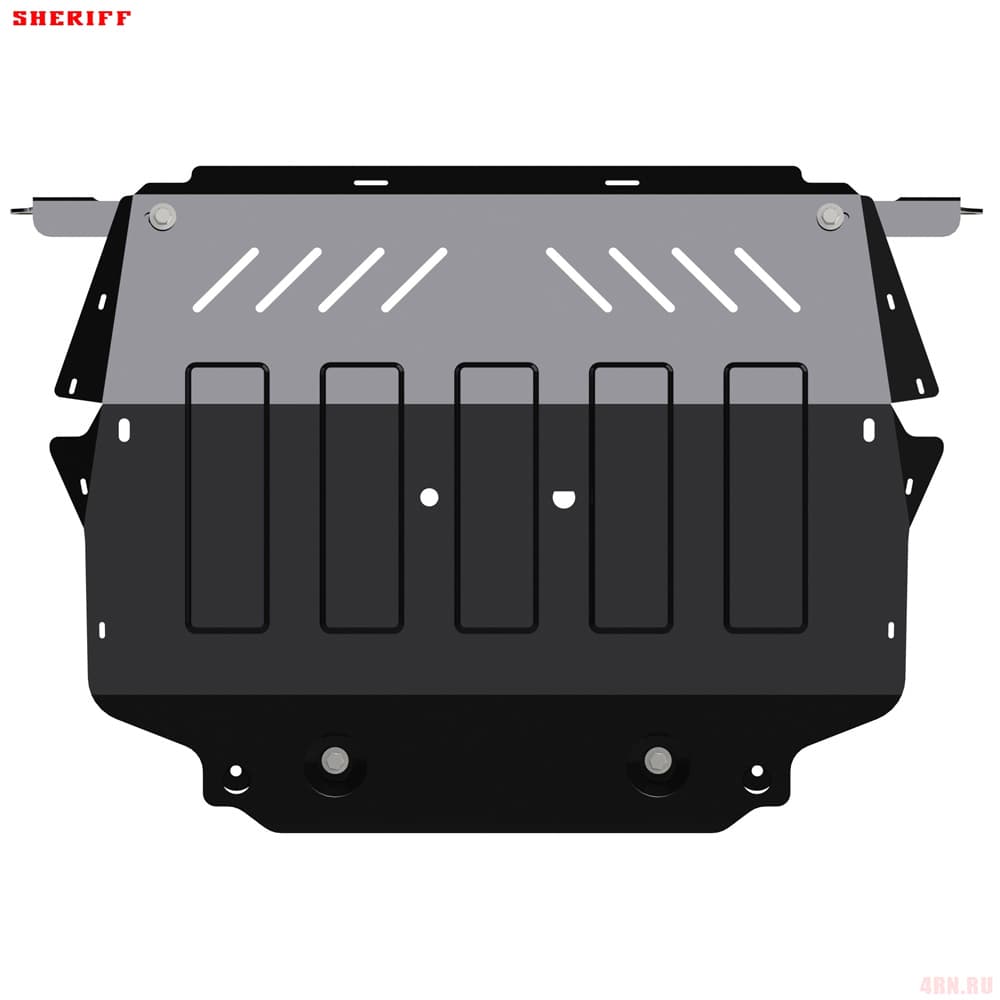 Защита картера Sheriff нужна для сохранности узлов и агрегатов, находящихся на днище авто. Она надежно защитит двигательный отсек вашей машины от повреждений. Также она защищает моторный отсек от влаги, грязи, и предусматривает наличие металлических крыльев, которые выполняют функцию пыльника.