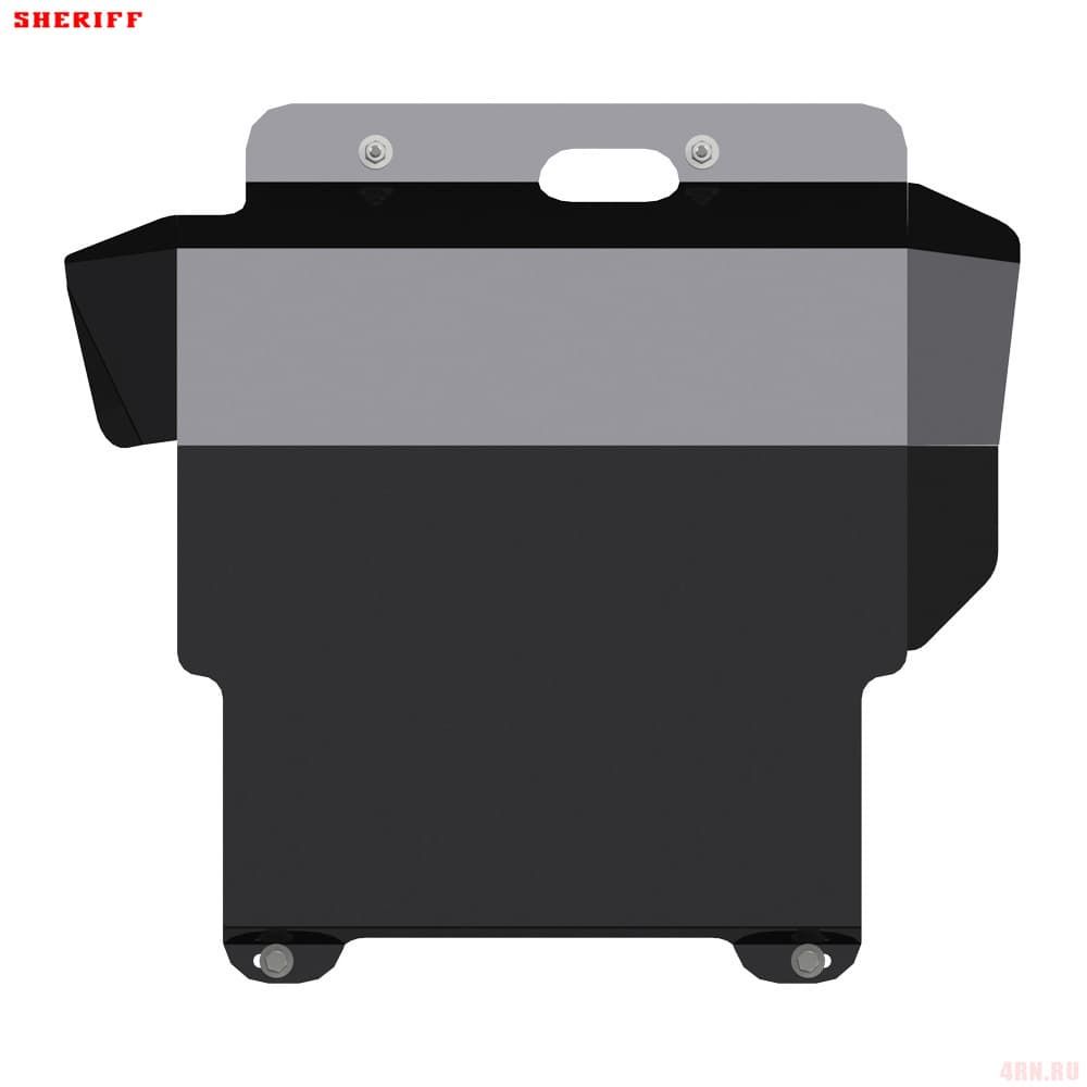 Защита картера Sheriff нужна для сохранности узлов и агрегатов, находящихся на днище авто. Она надежно защитит двигательный отсек вашей машины от повреждений. Также она защищает моторный отсек от влаги, грязи, и предусматривает наличие металлических крыльев, которые выполняют функцию пыльника.