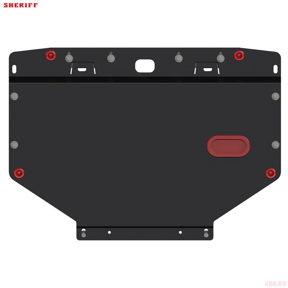 Защита картера Sheriff нужна для сохранности узлов и агрегатов, находящихся на днище авто. Она надежно защитит двигательный отсек вашей машины от повреждений. Также она защищает моторный отсек от влаги, грязи, и предусматривает наличие металлических крыльев, которые выполняют функцию пыльника.