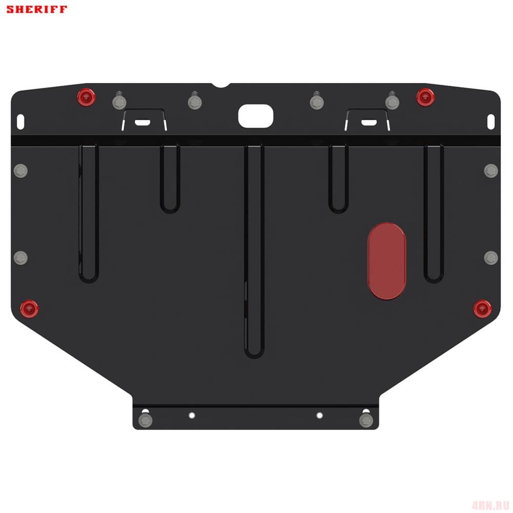 Защита картера Sheriff нужна для сохранности узлов и агрегатов, находящихся на днище авто. Она надежно защитит двигательный отсек вашей машины от повреждений. Также она защищает моторный отсек от влаги, грязи, и предусматривает наличие металлических крыльев, которые выполняют функцию пыльника.
