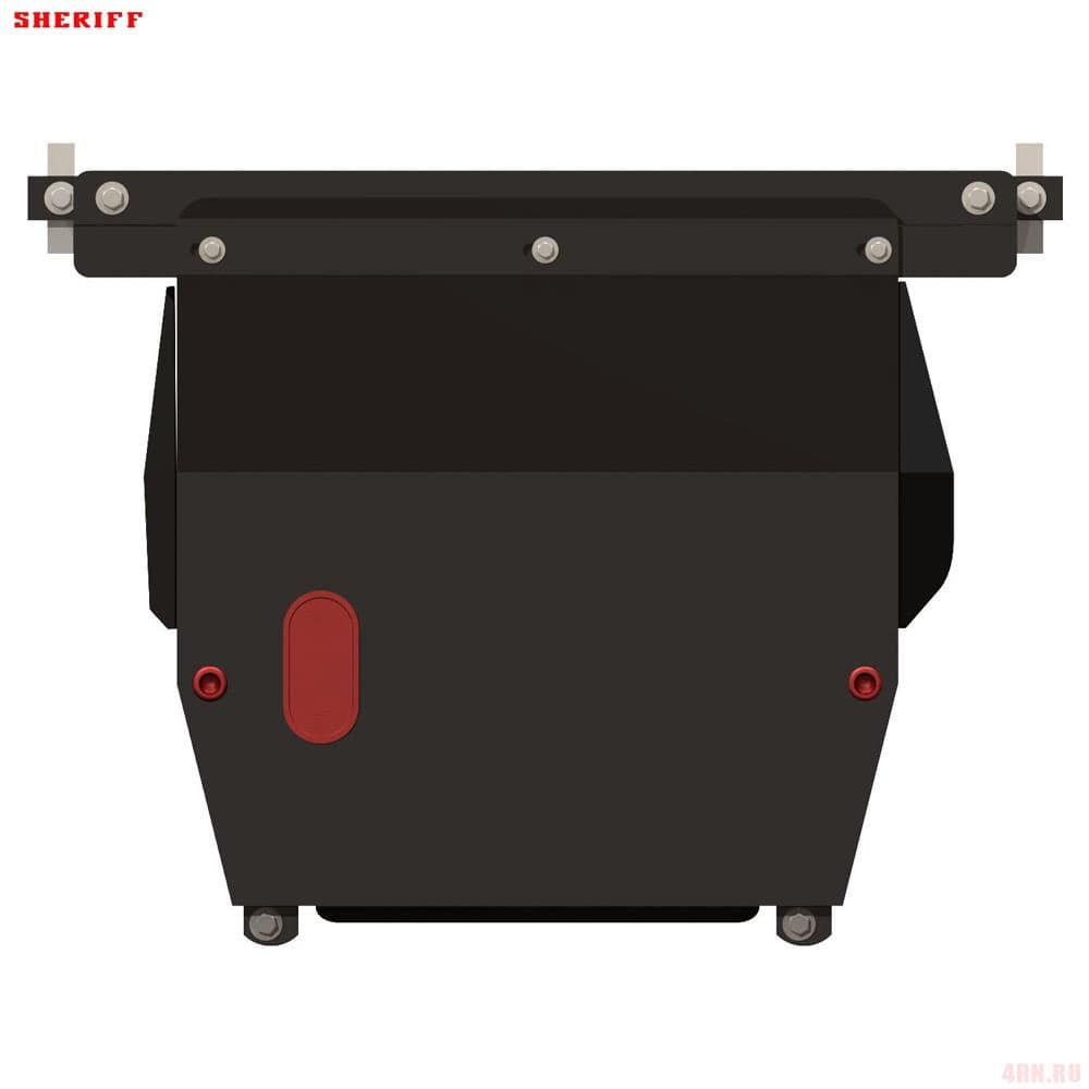 Защита картера Sheriff нужна для сохранности узлов и агрегатов, находящихся на днище авто. Она надежно защитит двигательный отсек вашей машины от повреждений. Также она защищает моторный отсек от влаги, грязи, и предусматривает наличие металлических крыльев, которые выполняют функцию пыльника.