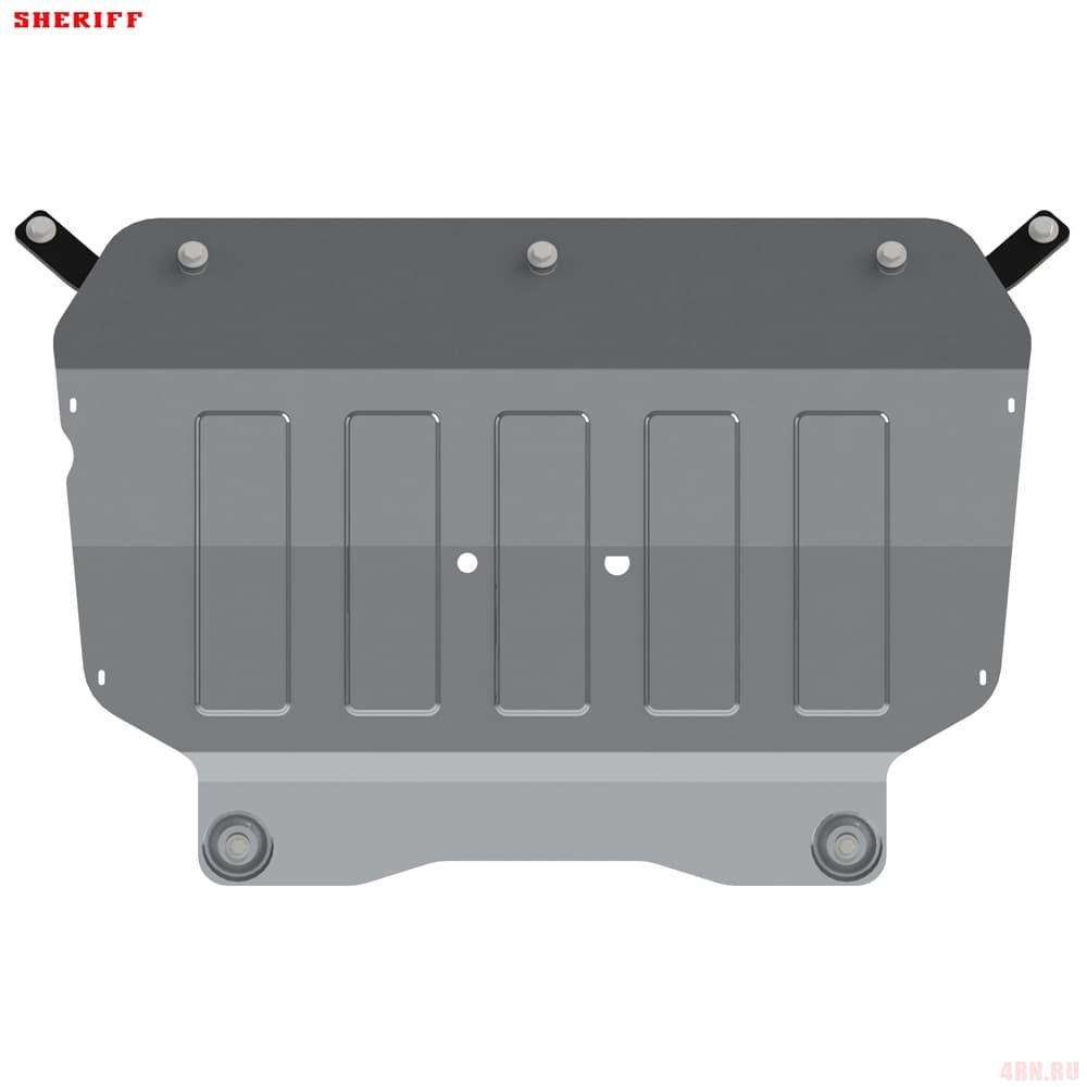Защита картера Sheriff нужна для сохранности узлов и агрегатов, находящихся на днище авто. Она надежно защитит двигательный отсек вашего автомобиля от повреждений. Также она защищает моторный отсек от влаги и грязи, и предусматривает наличие металлических крыльев, которые выполняют функцию пыльника.