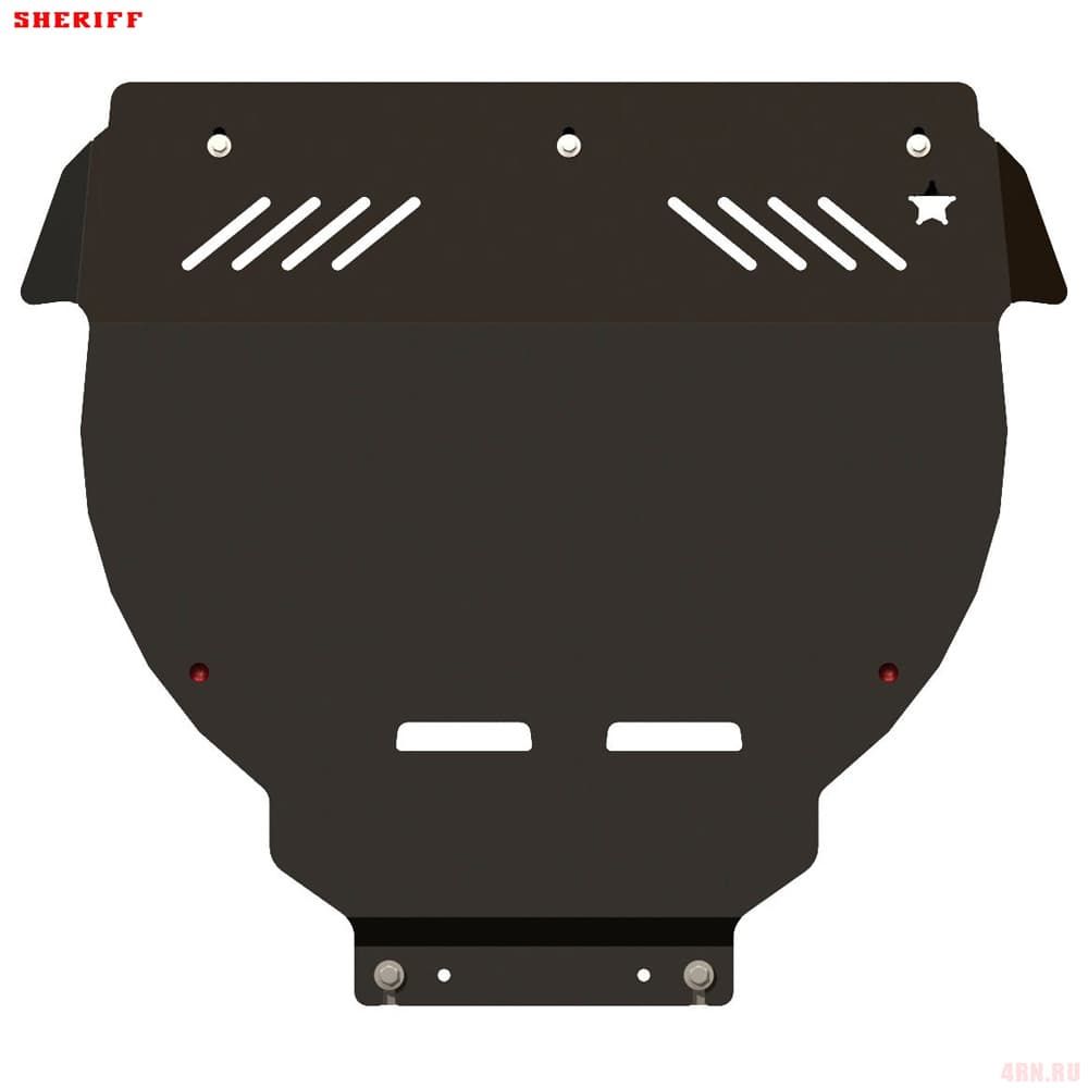 Защита картера Sheriff нужна для сохранности узлов и агрегатов, находящихся на днище авто. Она надежно защитит двигательный отсек вашей машины от повреждений. Также она защищает моторный отсек от влаги, грязи, и предусматривает наличие металлических крыльев, которые выполняют функцию пыльника.