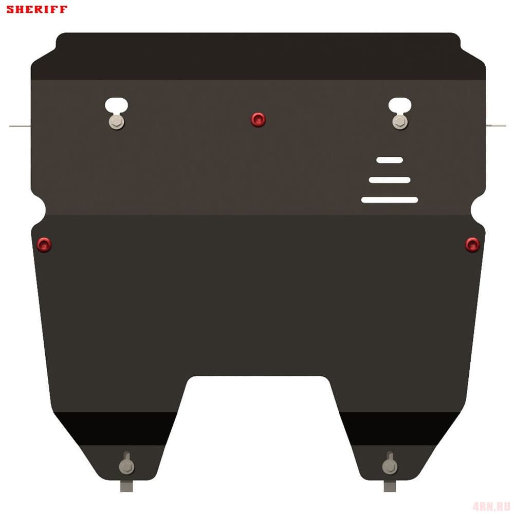 Защита картера Sheriff нужна для сохранности узлов и агрегатов, находящихся на днище авто. Она надежно защитит двигательный отсек вашей машины от повреждений. Также она защищает моторный отсек от влаги, грязи, и предусматривает наличие металлических крыльев, которые выполняют функцию пыльника.