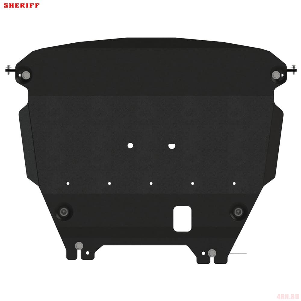 Защита картера Sheriff нужна для сохранности узлов и агрегатов, находящихся на днище авто. Она надежно защитит двигательный отсек вашей машины от повреждений. Также она защищает моторный отсек от влаги, грязи, и предусматривает наличие металлических крыльев, которые выполняют функцию пыльника.