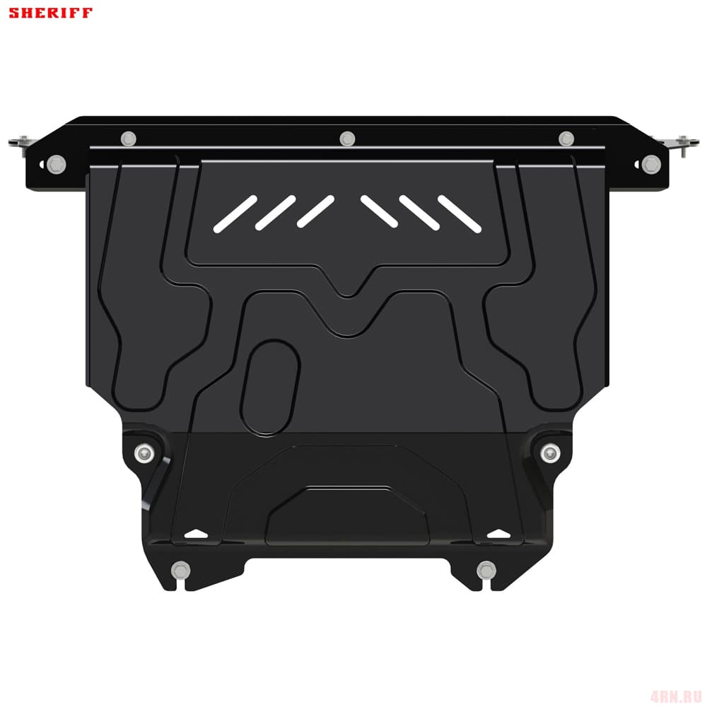 Защита картера Sheriff нужна для сохранности узлов и агрегатов, находящихся на днище авто. Она надежно защитит двигательный отсек вашей машины от повреждений. Также она защищает моторный отсек от влаги, грязи, и предусматривает наличие металлических крыльев, которые выполняют функцию пыльника.