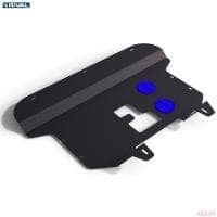 Порошковое окрашивание гарантирует долгий срок службы. А глубокий штамп увеличивает жесткость до 2,5 раз. Также имеется утопленный крепеж для предотвращения срывов. Качественная покраска защиты картера выдерживает 720 часов соляного тумана. Толщина изделия составляет 2-6 мм. Подштамповка в местах крепления предохраняет крепеж от срезания. Деталь спроектирована индивидуально для вашего автомобиля, что позволяет устанавливать ее в штатные места без доработки кузова за 10 мин.