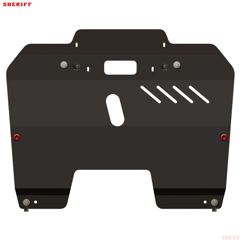 Защита картера Sheriff нужна для сохранности узлов и агрегатов, находящихся на днище авто. Она надежно защитит двигательный отсек вашей машины от повреждений. Также она защищает моторный отсек от влаги, грязи, и предусматривает наличие металлических крыльев, которые выполняют функцию пыльника.