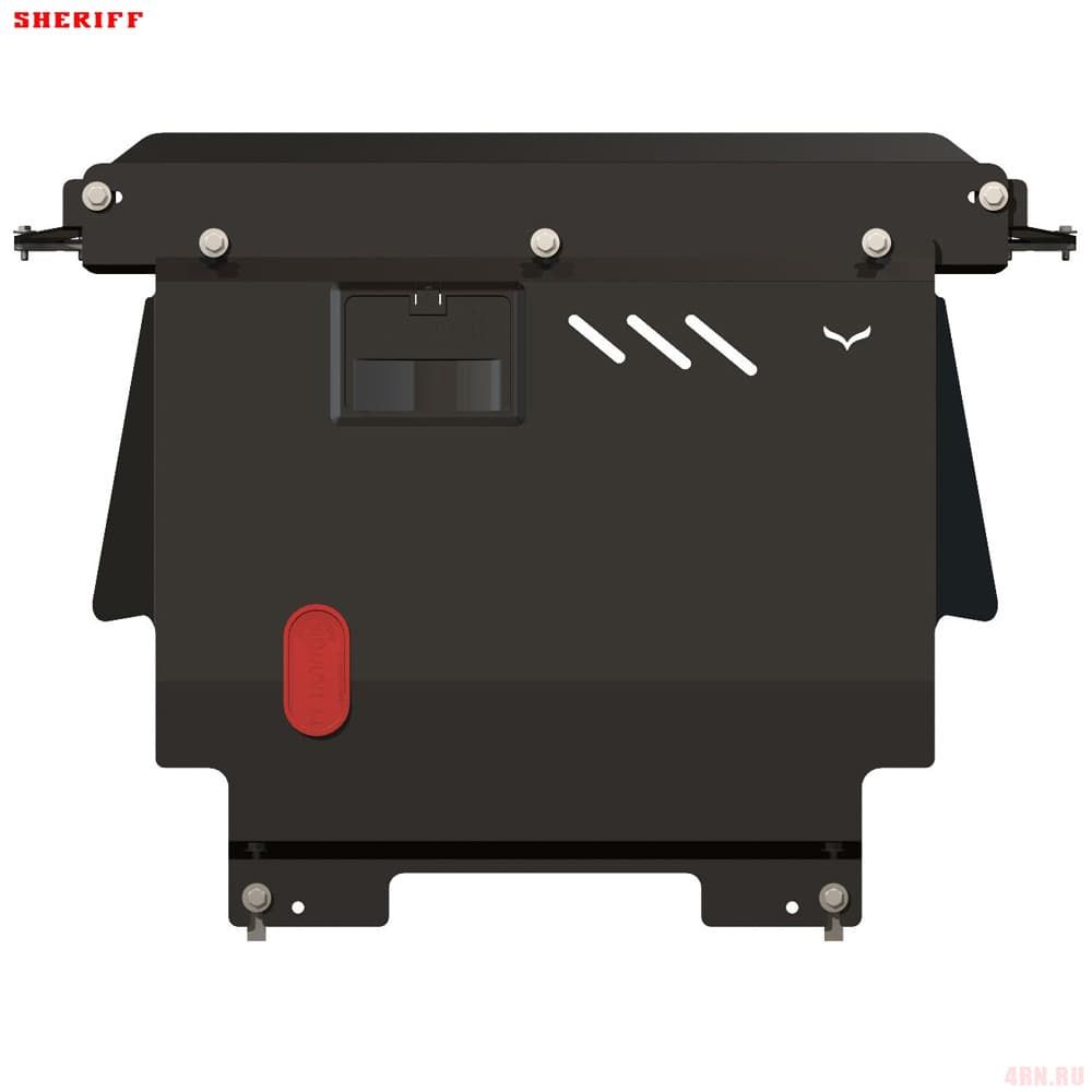 Защита картера Sheriff нужна для сохранности узлов и агрегатов, находящихся на днище авто. Она надежно защитит двигательный отсек вашей машины от повреждений. Также она защищает моторный отсек от влаги, грязи, и предусматривает наличие металлических крыльев, которые выполняют функцию пыльника.