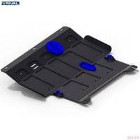 Порошковое окрашивание гарантирует долгий срок службы. А глубокий штамп увеличивает жесткость до 2,5 раз. Также имеется утопленный крепеж для предотвращения срывов. Качественная покраска защиты картера выдерживает 720 часов соляного тумана. Толщина изделия составляет 2-6 мм. Подштамповка в местах крепления предохраняет крепеж от срезания. Деталь спроектирована индивидуально для вашего автомобиля, что позволяет устанавливать ее в штатные места без доработки кузова за 10 мин.