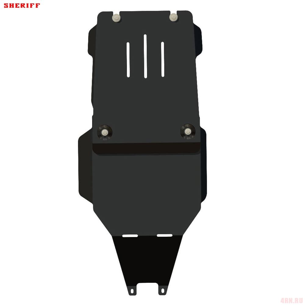 Защита картера Sheriff нужна для сохранности узлов и агрегатов, находящихся на днище авто. Она надежно защитит двигательный отсек вашей машины от повреждений. Также она защищает моторный отсек от влаги, грязи, и предусматривает наличие металлических крыльев, которые выполняют функцию пыльника.