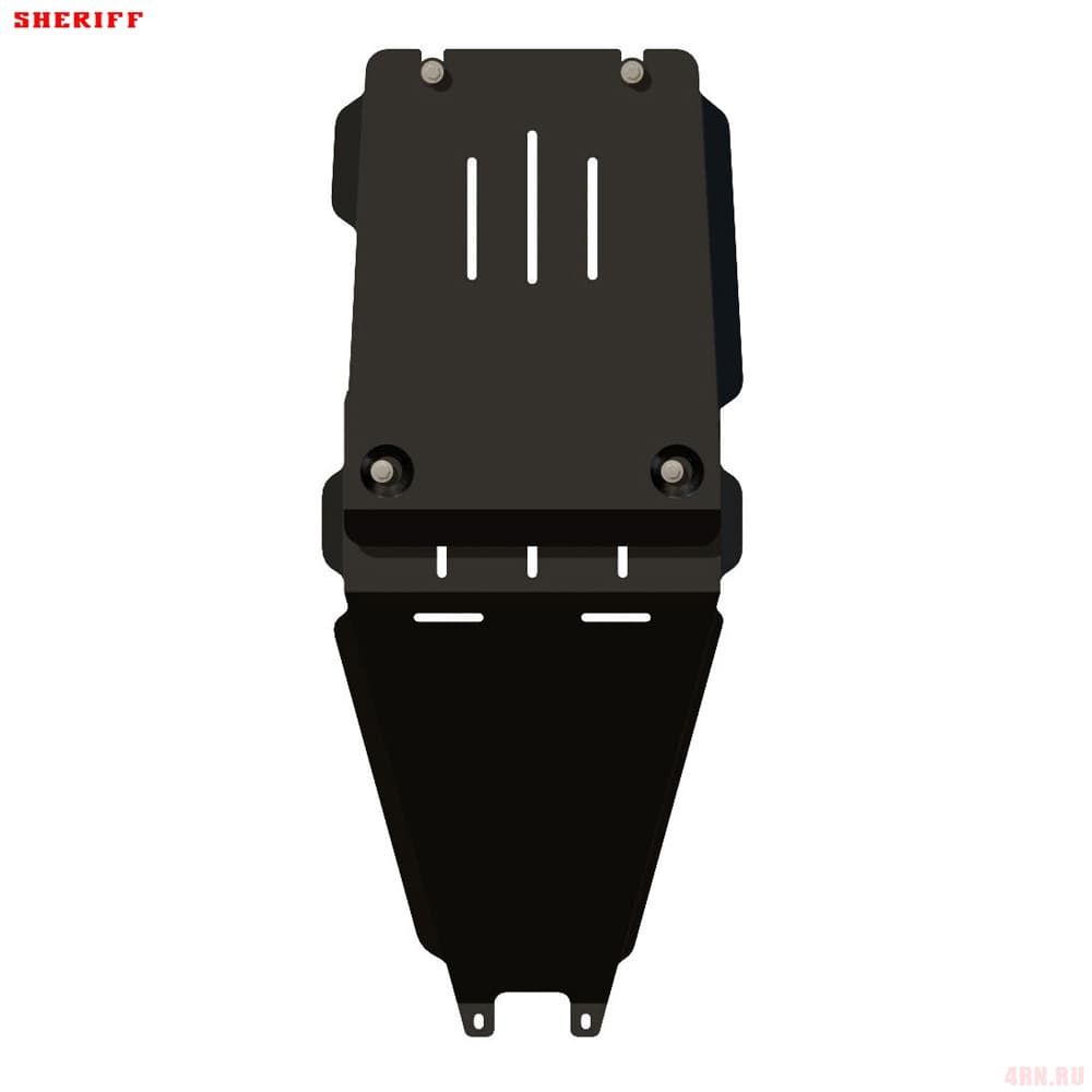 Защита картера Sheriff нужна для сохранности узлов и агрегатов, находящихся на днище авто. Она надежно защитит двигательный отсек вашей машины от повреждений. Также она защищает моторный отсек от влаги, грязи, и предусматривает наличие металлических крыльев, которые выполняют функцию пыльника.