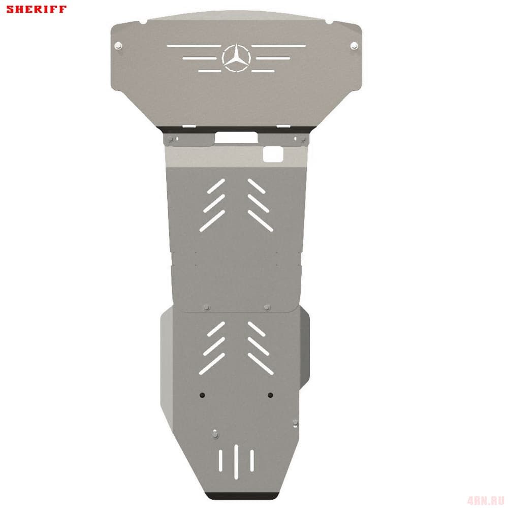 Алюминиевая защита двигателя, кпп с крепежом в комплекте, артикул 13.1173 от российского производителя Шериф. Разработана специально для автомобиля Мерседес M W164 2005-2011.