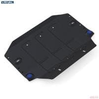 Порошковое окрашивание гарантирует долгий срок службы. А глубокий штамп увеличивает жесткость до 2,5 раз. Также имеется утопленный крепеж для предотвращения срывов. Качественная покраска защиты картера выдерживает 720 часов соляного тумана. Толщина изделия составляет 2-6 мм. Подштамповка в местах крепления предохраняет крепеж от срезания. Деталь спроектирована индивидуально для вашего автомобиля, что позволяет устанавливать ее в штатные места без доработки кузова за 10 мин.