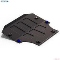 Порошковое окрашивание гарантирует долгий срок службы. А глубокий штамп увеличивает жесткость до 2,5 раз. Также имеется утопленный крепеж для предотвращения срывов. Качественная покраска защиты картера выдерживает 720 часов соляного тумана. Толщина изделия составляет 2-6 мм. Подштамповка в местах крепления предохраняет крепеж от срезания. Деталь спроектирована индивидуально для вашего автомобиля, что позволяет устанавливать ее в штатные места без доработки кузова за 10 мин.