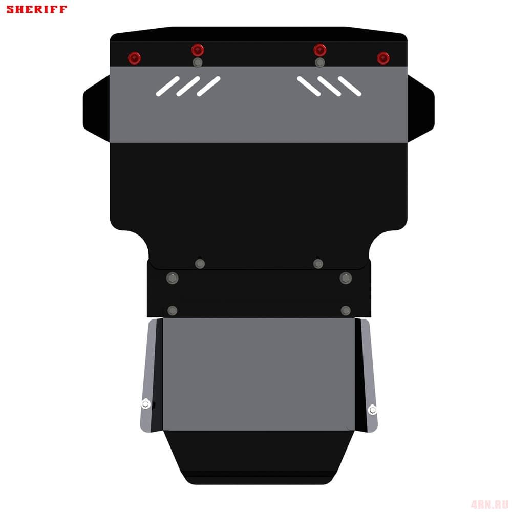 Защита картера Sheriff нужна для сохранности узлов и агрегатов, находящихся на днище авто. Она надежно защитит двигательный отсек вашей машины от повреждений. Также она защищает моторный отсек от влаги, грязи, и предусматривает наличие металлических крыльев, которые выполняют функцию пыльника.