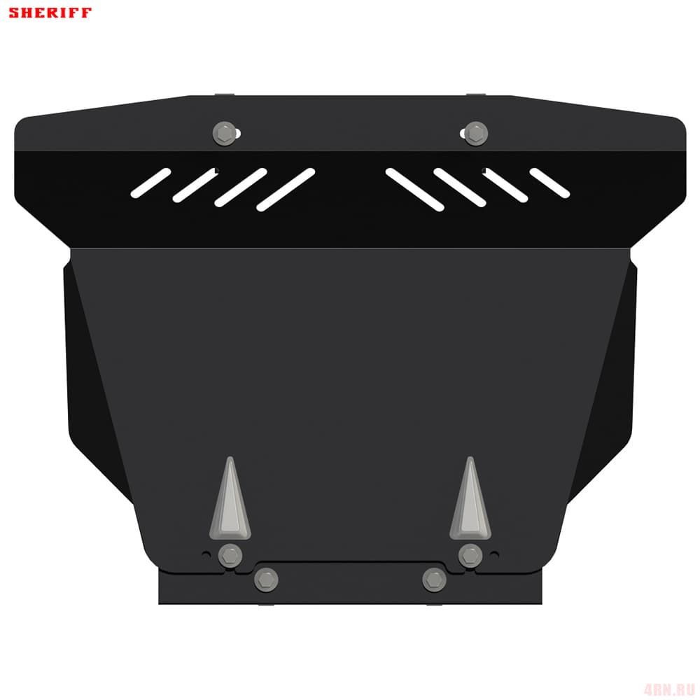 Защита картера Sheriff нужна для сохранности узлов и агрегатов, находящихся на днище авто. Она надежно защитит двигательный отсек вашей машины от повреждений. Также она защищает моторный отсек от влаги, грязи, и предусматривает наличие металлических крыльев, которые выполняют функцию пыльника.