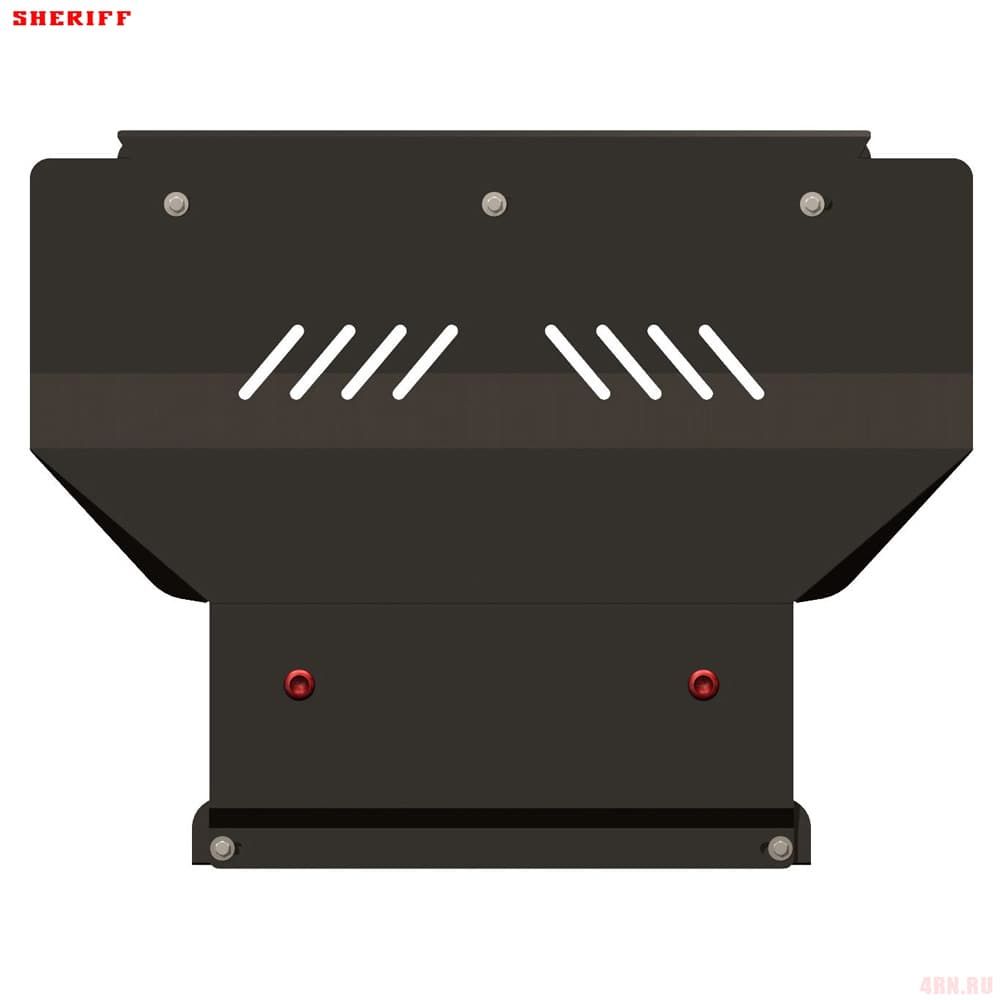Защита картера Sheriff нужна для сохранности узлов и агрегатов, находящихся на днище авто. Она надежно защитит двигательный отсек вашей машины от повреждений. Также она защищает моторный отсек от влаги, грязи, и предусматривает наличие металлических крыльев, которые выполняют функцию пыльника.