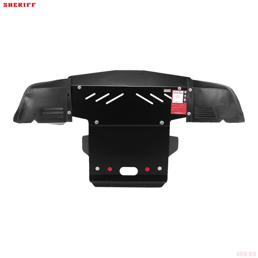 Защита картера Sheriff нужна для сохранности узлов и агрегатов, находящихся на днище авто. Она надежно защитит двигательный отсек вашей машины от повреждений. Также она защищает моторный отсек от влаги, грязи, и предусматривает наличие металлических крыльев, которые выполняют функцию пыльника.