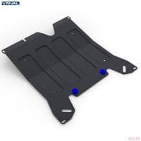 Порошковое окрашивание гарантирует долгий срок службы. А глубокий штамп увеличивает жесткость до 2,5 раз. Также имеется утопленный крепеж для предотвращения срывов. Качественная покраска защиты картера выдерживает 720 часов соляного тумана. Толщина изделия составляет 2-6 мм. Подштамповка в местах крепления предохраняет крепеж от срезания. Деталь спроектирована индивидуально для вашего автомобиля, что позволяет устанавливать ее в штатные места без доработки кузова за 10 мин.