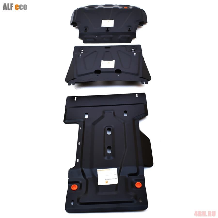 Защита днища артикул 09.895.C2 от российского производителя ALFeco. Подходит для Тойота Ленд Крузер 200 20 2015-2019х годов выпуска. Защита состоит из трех листов и крепежа в комплекте Стали толщиной 2,0 мм достаточно для городских условий, вес ее 12 кг.