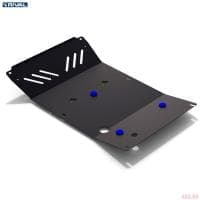 Порошковое окрашивание гарантирует долгий срок службы. А глубокий штамп увеличивает жесткость до 2,5 раз. Также имеется утопленный крепеж для предотвращения срывов. Качественная покраска защиты картера выдерживает 720 часов соляного тумана. Толщина изделия составляет 2-6 мм. Подштамповка в местах крепления предохраняет крепеж от срезания. Деталь спроектирована индивидуально для вашего автомобиля, что позволяет устанавливать ее в штатные места без доработки кузова за 10 мин.