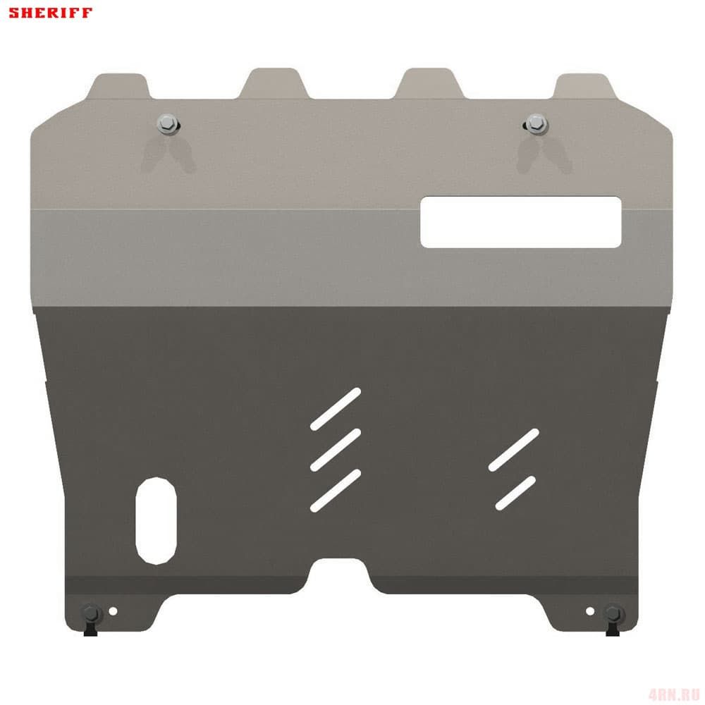 Защита картера Sheriff нужна для сохранности узлов и агрегатов, находящихся на днище авто. Она надежно защитит двигательный отсек вашего автомобиля от повреждений. Также она защищает моторный отсек от влаги и грязи, и предусматривает наличие металлических крыльев, которые выполняют функцию пыльника.