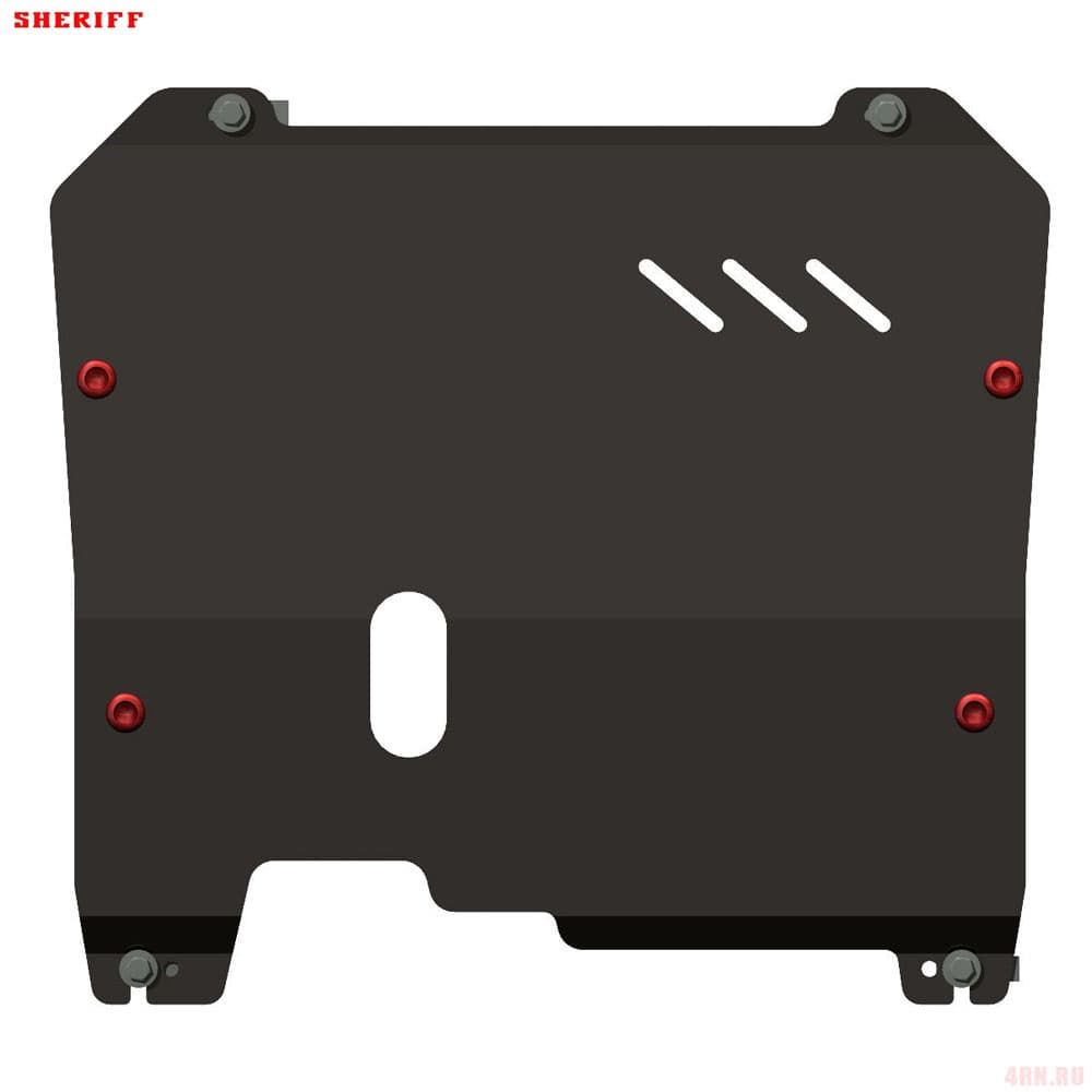 Защита картера Sheriff нужна для сохранности узлов и агрегатов, находящихся на днище авто. Она надежно защитит двигательный отсек вашей машины от повреждений. Также она защищает моторный отсек от влаги, грязи, и предусматривает наличие металлических крыльев, которые выполняют функцию пыльника.