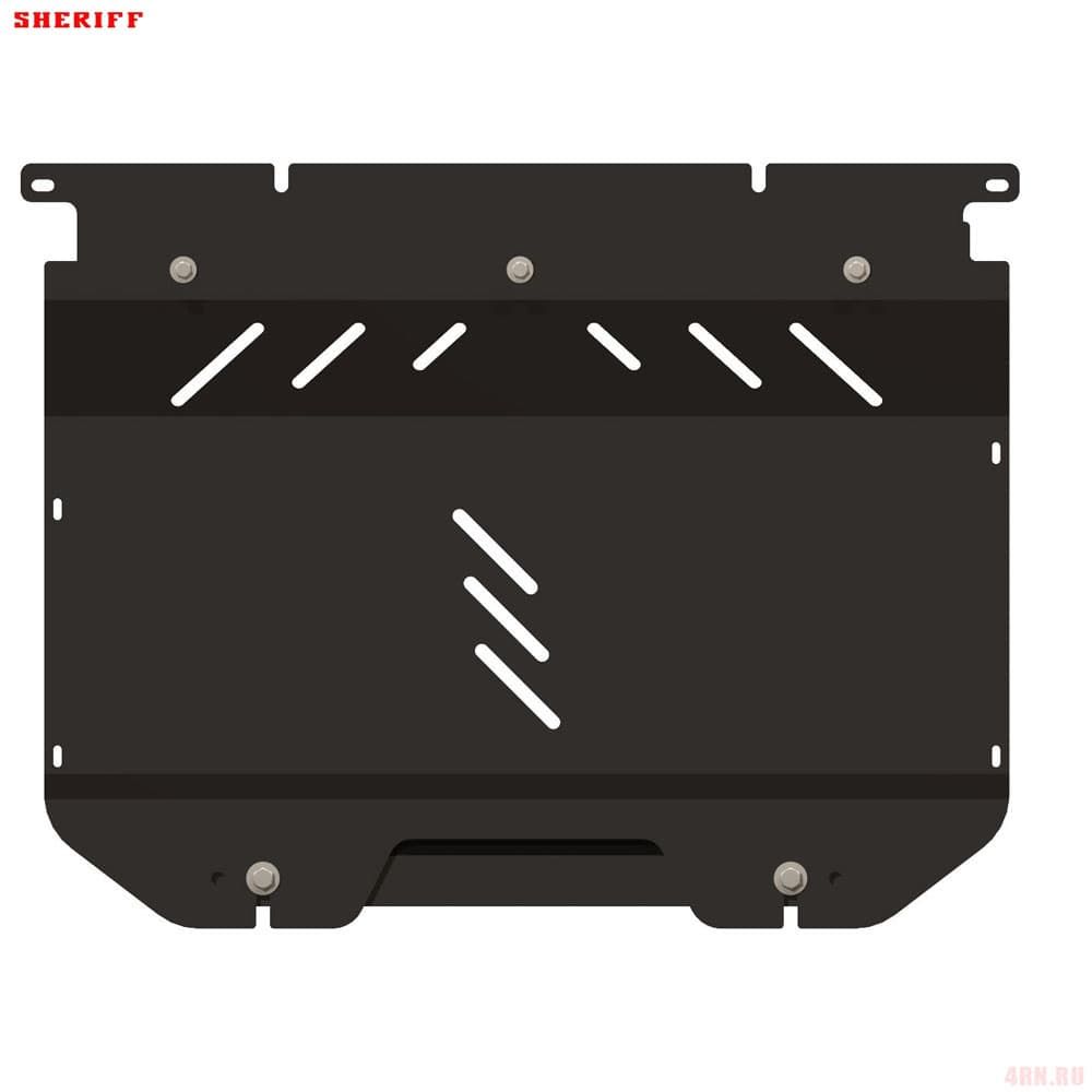 Защита картера Sheriff нужна для сохранности узлов и агрегатов, находящихся на днище авто. Она надежно защитит двигательный отсек вашей машины от повреждений. Также она защищает моторный отсек от влаги, грязи, и предусматривает наличие металлических крыльев, которые выполняют функцию пыльника.