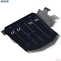 Порошковое окрашивание гарантирует долгий срок службы. А глубокий штамп увеличивает жесткость до 2,5 раз. Также имеется утопленный крепеж для предотвращения срывов. Качественная покраска защиты картера выдерживает 720 часов соляного тумана. Толщина изделия составляет 2-6 мм. Подштамповка в местах крепления предохраняет крепеж от срезания. Деталь спроектирована индивидуально для вашего автомобиля, что позволяет устанавливать ее в штатные места без доработки кузова за 10 мин.