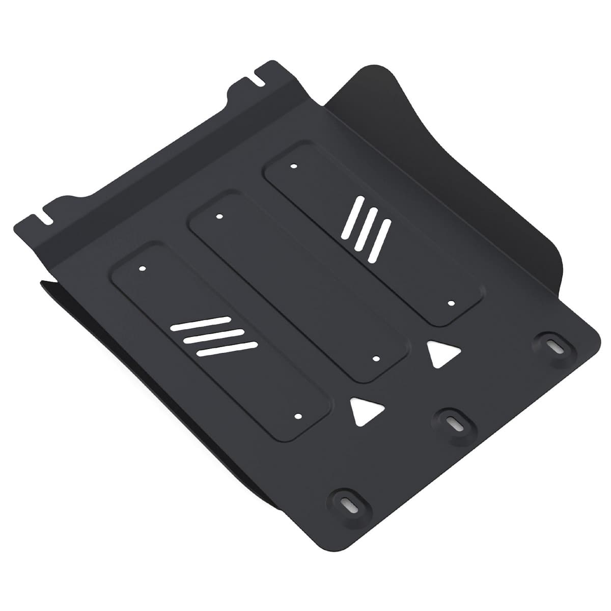 Порошковое окрашивание гарантирует долгий срок службы. А глубокий штамп увеличивает жесткость до 2,5 раз. Также имеется утопленный крепеж для предотвращения срывов. Качественная покраска защиты картера выдерживает 720 часов соляного тумана. Толщина изделия составляет 2-6 мм. Подштамповка в местах крепления предохраняет крепеж от срезания. Деталь спроектирована индивидуально для вашего автомобиля, что позволяет устанавливать ее в штатные места без доработки кузова за 10 мин.