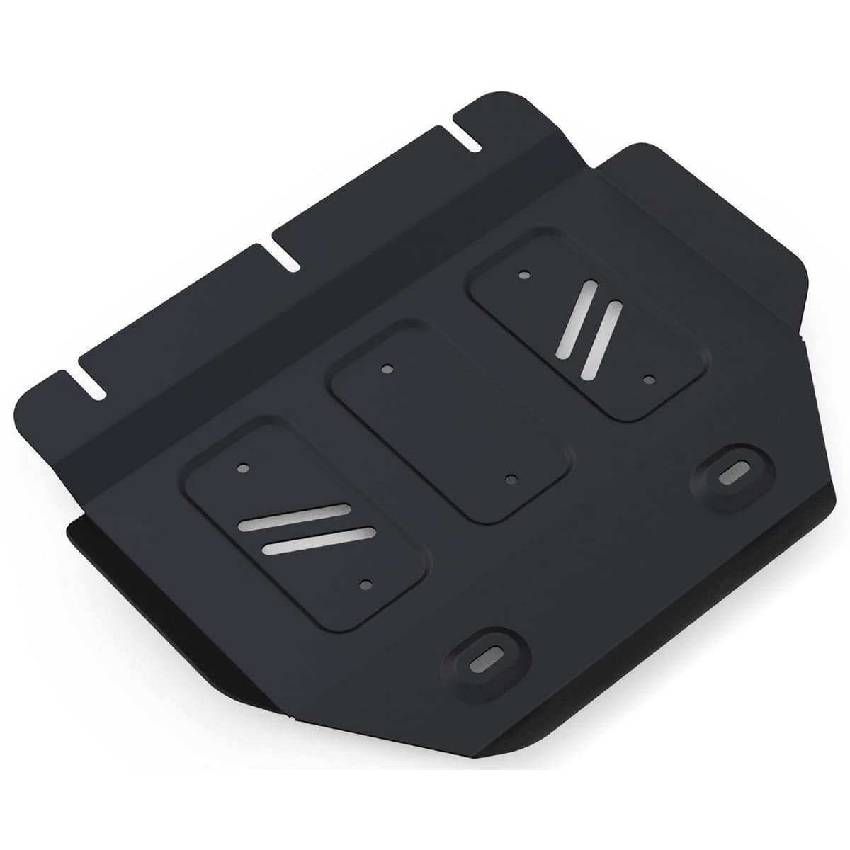 Порошковое окрашивание гарантирует долгий срок службы. А глубокий штамп увеличивает жесткость до 2,5 раз. Также имеется утопленный крепеж для предотвращения срывов. Качественная покраска защиты картера выдерживает 720 часов соляного тумана. Толщина изделия составляет 2-6 мм. Подштамповка в местах крепления предохраняет крепеж от срезания. Деталь спроектирована индивидуально для вашего автомобиля, что позволяет устанавливать ее в штатные места без доработки кузова за 10 мин.