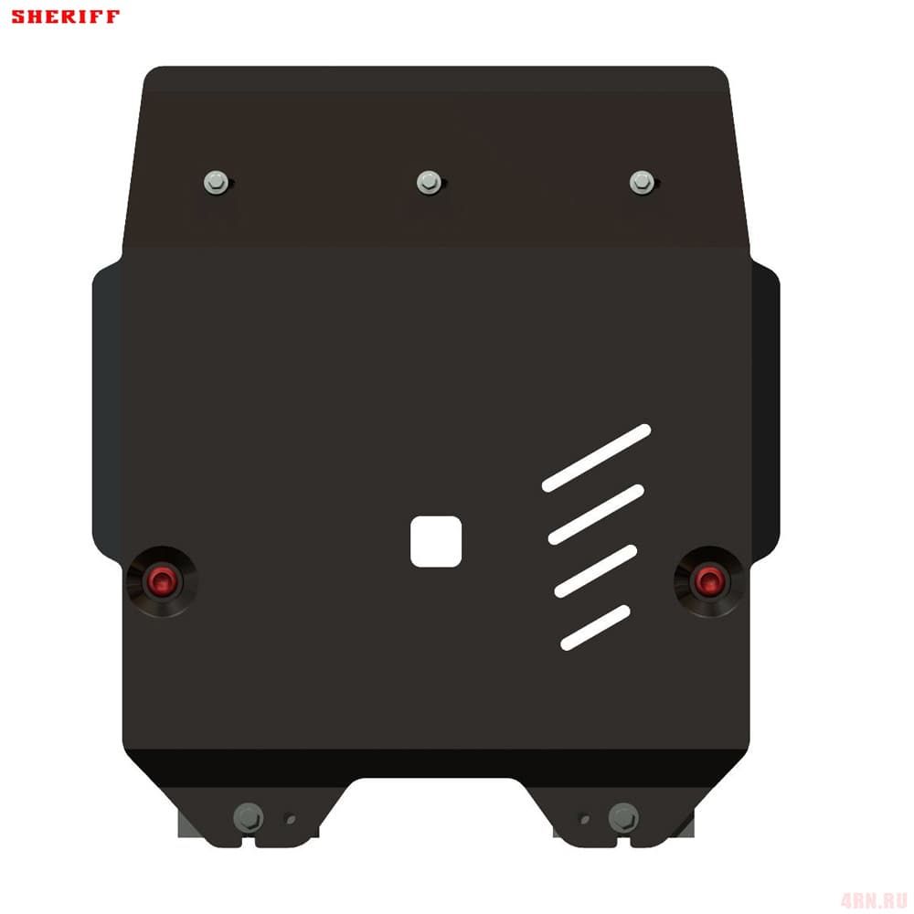 Защита картера Sheriff нужна для сохранности узлов и агрегатов, находящихся на днище авто. Она надежно защитит двигательный отсек вашей машины от повреждений. Также она защищает моторный отсек от влаги, грязи, и предусматривает наличие металлических крыльев, которые выполняют функцию пыльника.