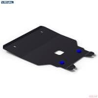 Порошковое окрашивание гарантирует долгий срок службы. А глубокий штамп увеличивает жесткость до 2,5 раз. Также имеется утопленный крепеж для предотвращения срывов. Качественная покраска защиты картера выдерживает 720 часов соляного тумана. Толщина изделия составляет 2-6 мм. Подштамповка в местах крепления предохраняет крепеж от срезания. Деталь спроектирована индивидуально для вашего автомобиля, что позволяет устанавливать ее в штатные места без доработки кузова за 10 мин.
