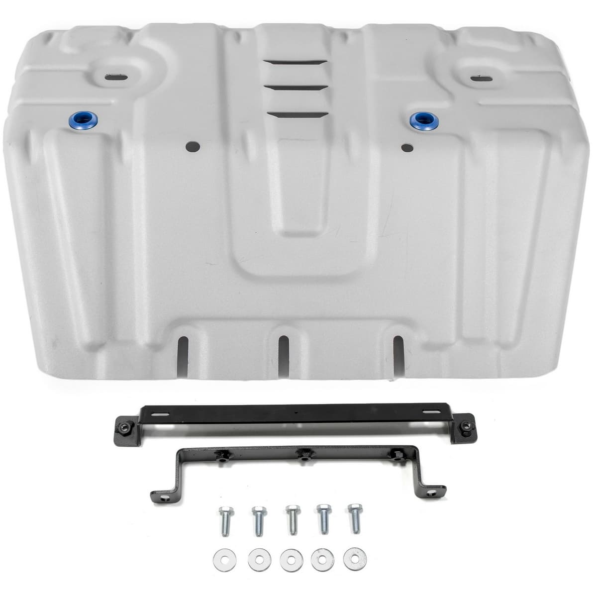Стойкое порошковое окрашивание позволяет сохранить внешний вид, защитит от царапин, предотвратит коррозию. Также имеется утопленный крепеж для предотвращения срывов. Крепеж не образует с алюминием гальваническую пару. Защита спроектирована индивидуально для автомобиля, что позволяет устанавливать ее в штатные места без доработки кузова за 10 мин.