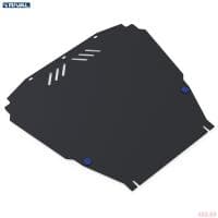 Порошковое окрашивание гарантирует долгий срок службы. А глубокий штамп увеличивает жесткость до 2,5 раз. Также имеется утопленный крепеж для предотвращения срывов. Качественная покраска защиты картера выдерживает 720 часов соляного тумана. Толщина изделия составляет 2-6 мм. Подштамповка в местах крепления предохраняет крепеж от срезания. Деталь спроектирована индивидуально для вашего автомобиля, что позволяет устанавливать ее в штатные места без доработки кузова за 10 мин.