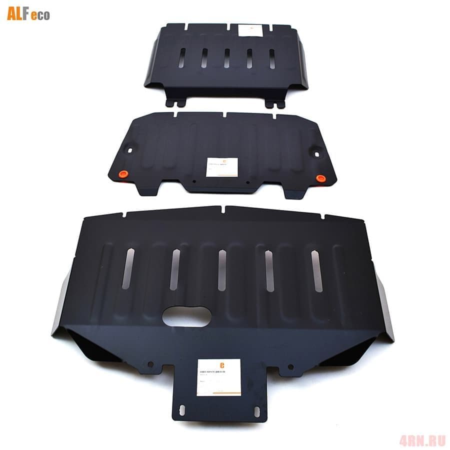 Защита для двигателя и кпп от производителя ALFeco, состоит из 3 листа и крепежа, материал - сталь толщиной 2.0 мм, подходит для автомобилей с двигателем объемом - 2.5td, привод - все, кпп - все. Отверстие для слива масла и смены фильтра - нет.
