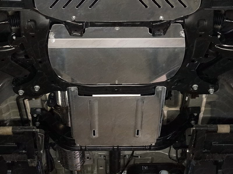 Алюминиевая защита коробки передач артикул ZKTCC00358 от российского производителя ТСС. Подходит для Хендай Н1 2018, 2019х годов выпуска. Защита состоит из одного листа и крепежа в комплекте Алюминия толщиной 4,0 мм достаточно для комфортного передвижения без опасений за автомобиль, вес ее 12 кг.