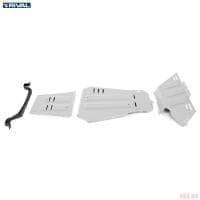 Стойкое порошковое окрашивание позволяет сохранить внешний вид, защитит от царапин, предотвратит коррозию. Также имеется утопленный крепеж для предотвращения срывов. Крепеж не образует с алюминием гальваническую пару. Защита спроектирована индивидуально для автомобиля, что позволяет устанавливать ее в штатные места без доработки кузова за 10 мин.
