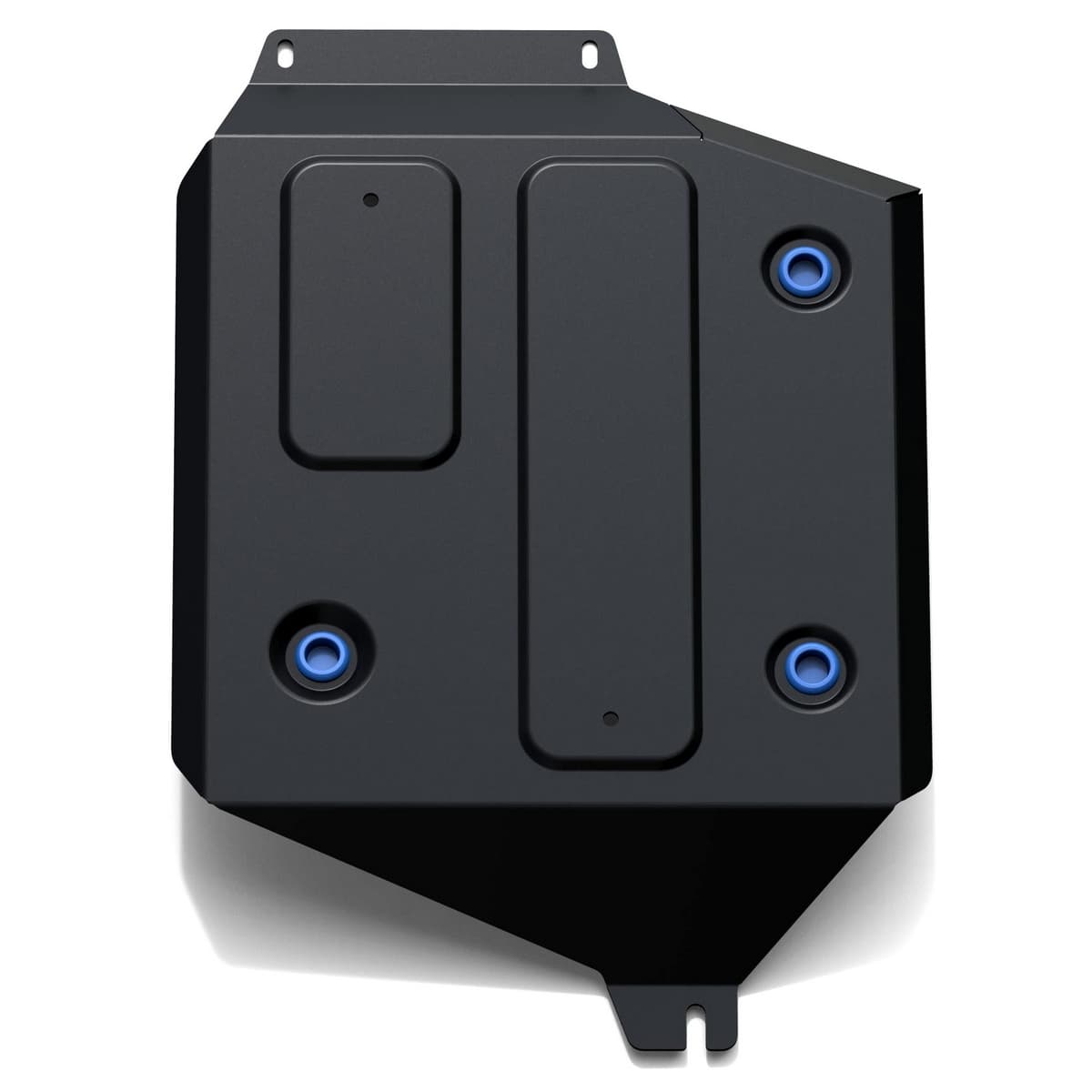 Порошковое окрашивание гарантирует долгий срок службы. А глубокий штамп увеличивает жесткость до 2,5 раз. Также имеется утопленный крепеж для предотвращения срывов. Качественная покраска защиты картера выдерживает 720 часов соляного тумана. Толщина изделия составляет 2-6 мм. Подштамповка в местах крепления предохраняет крепеж от срезания. Деталь спроектирована индивидуально для вашего автомобиля, что позволяет устанавливать ее в штатные места без доработки кузова за 10 мин.