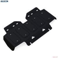 Порошковое окрашивание гарантирует долгий срок службы. А глубокий штамп увеличивает жесткость до 2,5 раз. Также имеется утопленный крепеж для предотвращения срывов. Качественная покраска защиты картера выдерживает 720 часов соляного тумана. Толщина изделия составляет 2-6 мм. Подштамповка в местах крепления предохраняет крепеж от срезания. Деталь спроектирована индивидуально для вашего автомобиля, что позволяет устанавливать ее в штатные места без доработки кузова за 10 мин.