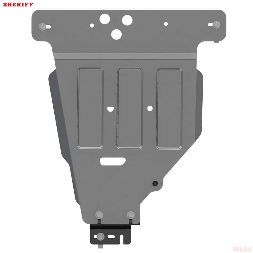Защита картера Sheriff нужна для сохранности узлов и агрегатов, находящихся на днище авто. Она надежно защитит двигательный отсек вашего автомобиля от повреждений. Также она защищает моторный отсек от влаги и грязи, и предусматривает наличие металлических крыльев, которые выполняют функцию пыльника.