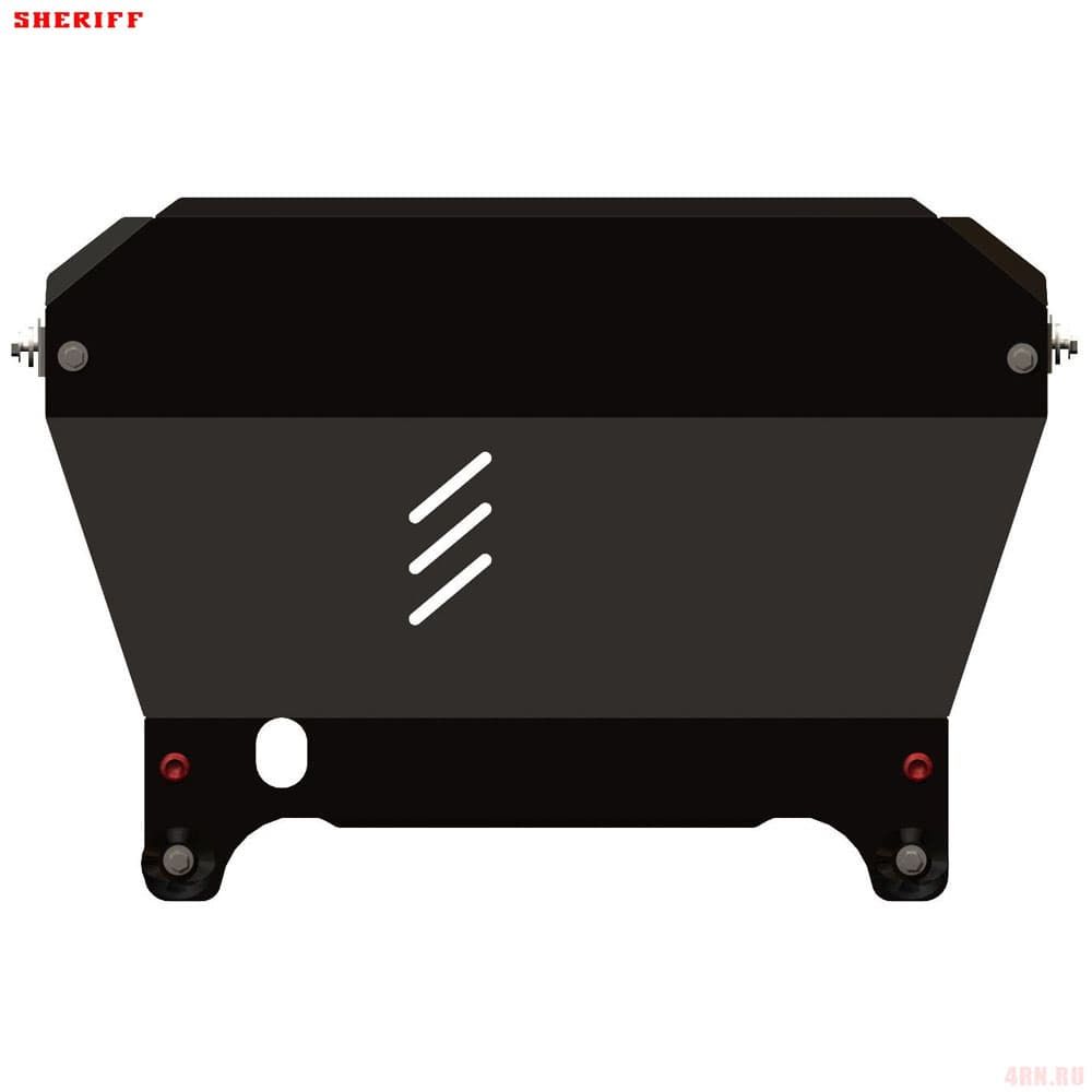 Защита картера Sheriff нужна для сохранности узлов и агрегатов, находящихся на днище авто. Она надежно защитит двигательный отсек вашей машины от повреждений. Также она защищает моторный отсек от влаги, грязи, и предусматривает наличие металлических крыльев, которые выполняют функцию пыльника.