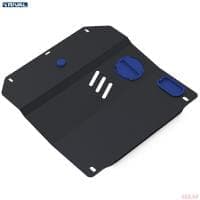 Порошковое окрашивание гарантирует долгий срок службы. А глубокий штамп увеличивает жесткость до 2,5 раз. Также имеется утопленный крепеж для предотвращения срывов. Качественная покраска защиты картера выдерживает 720 часов соляного тумана. Толщина изделия составляет 2-6 мм. Подштамповка в местах крепления предохраняет крепеж от срезания. Деталь спроектирована индивидуально для вашего автомобиля, что позволяет устанавливать ее в штатные места без доработки кузова за 10 мин.
