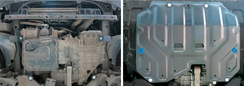 Стойкое порошковое окрашивание позволяет сохранить внешний вид, защитит от царапин, предотвратит коррозию. Также имеется утопленный крепеж для предотвращения срывов. Крепеж не образует с алюминием гальваническую пару. Защита спроектирована индивидуально для автомобиля, что позволяет устанавливать ее в штатные места без доработки кузова за 10 мин.