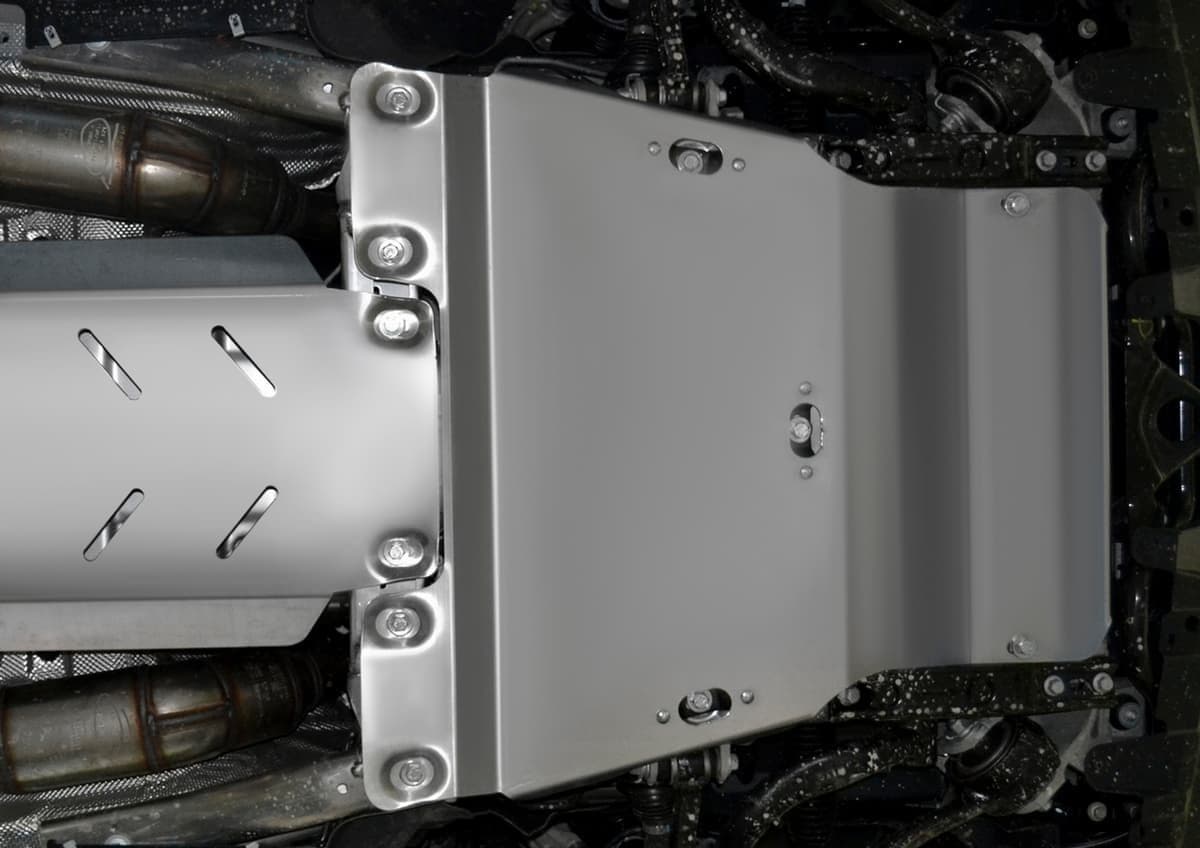 Стойкое порошковое окрашивание позволяет сохранить внешний вид, защитит от царапин, предотвратит коррозию. Также имеется утопленный крепеж для предотвращения срывов. Крепеж не образует с алюминием гальваническую пару. Защита спроектирована индивидуально для автомобиля, что позволяет устанавливать ее в штатные места без доработки кузова за 10 мин.